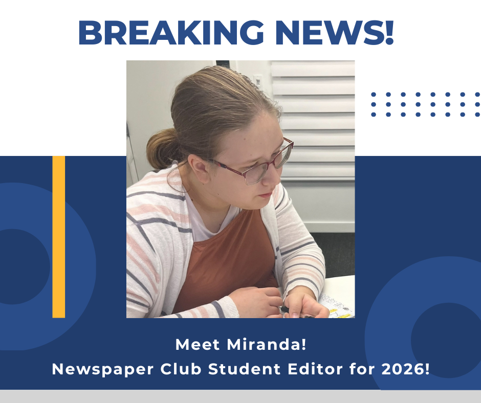 Greetings, fellow students! Miranda here, and I am so glad to become Chief-of-Staff for Newspaper Club. Let’s think about our newspaper as a recipe. A spoonful of facts, a dash of creativity, a couple drops of encouragement, and of course, a heaping pile of teamwork and cooperation. As the Editor in Chief of Newspaper Club, I will use all my effort to make this newspaper the best it'll ever be.
